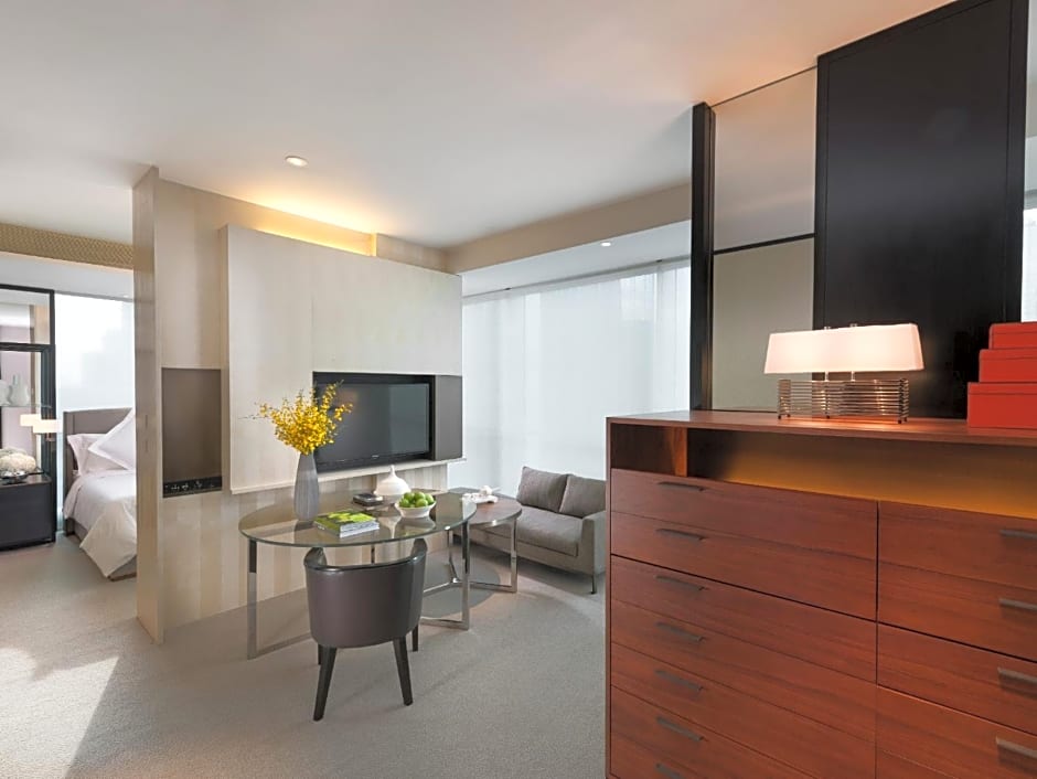 Fuzing traditional aspects of Oriental style with striking elements of contemporary Chinese design, the suites enjoy sweeping views of the city skyline through dramatic floor-to-ceiling windows.